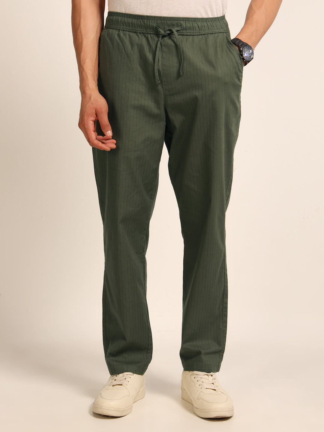 Olive Green Relaxed Fit Linen Trouser
