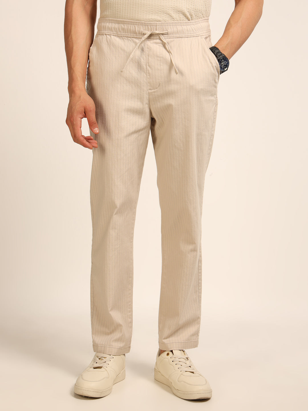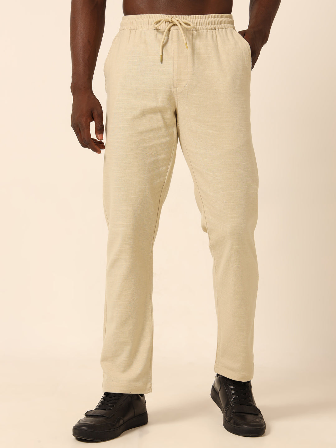 Beige Relaxed Fit Linen Trouser