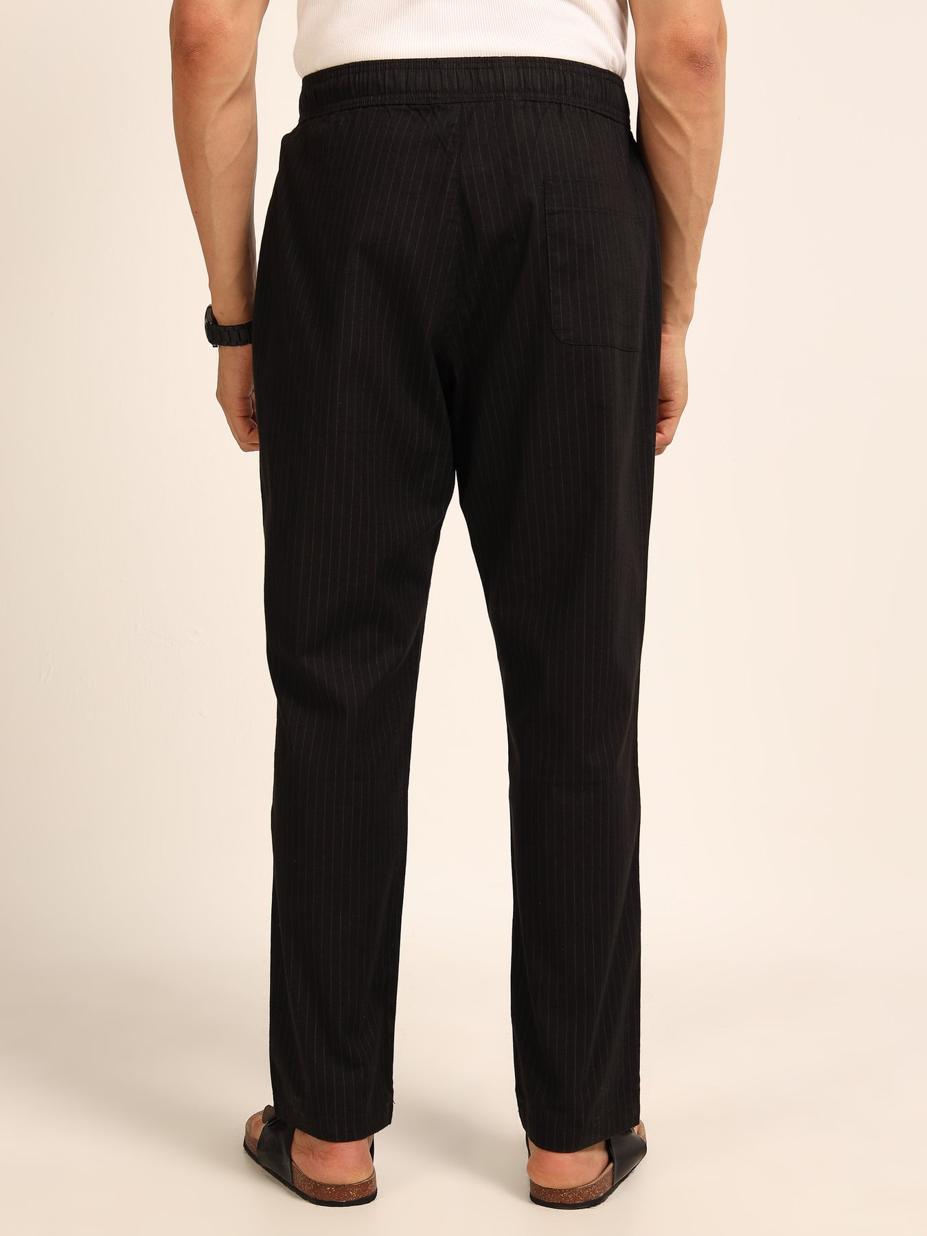 Crafted from a soft and breathable Cotton-Linen , these black striped pants offer cool comfort and a refined everyday look. Designed with a straight fit and an elastic drawstring waist for easy wear, they are perfect for casual outings, relaxed weekends, and daily comfort.