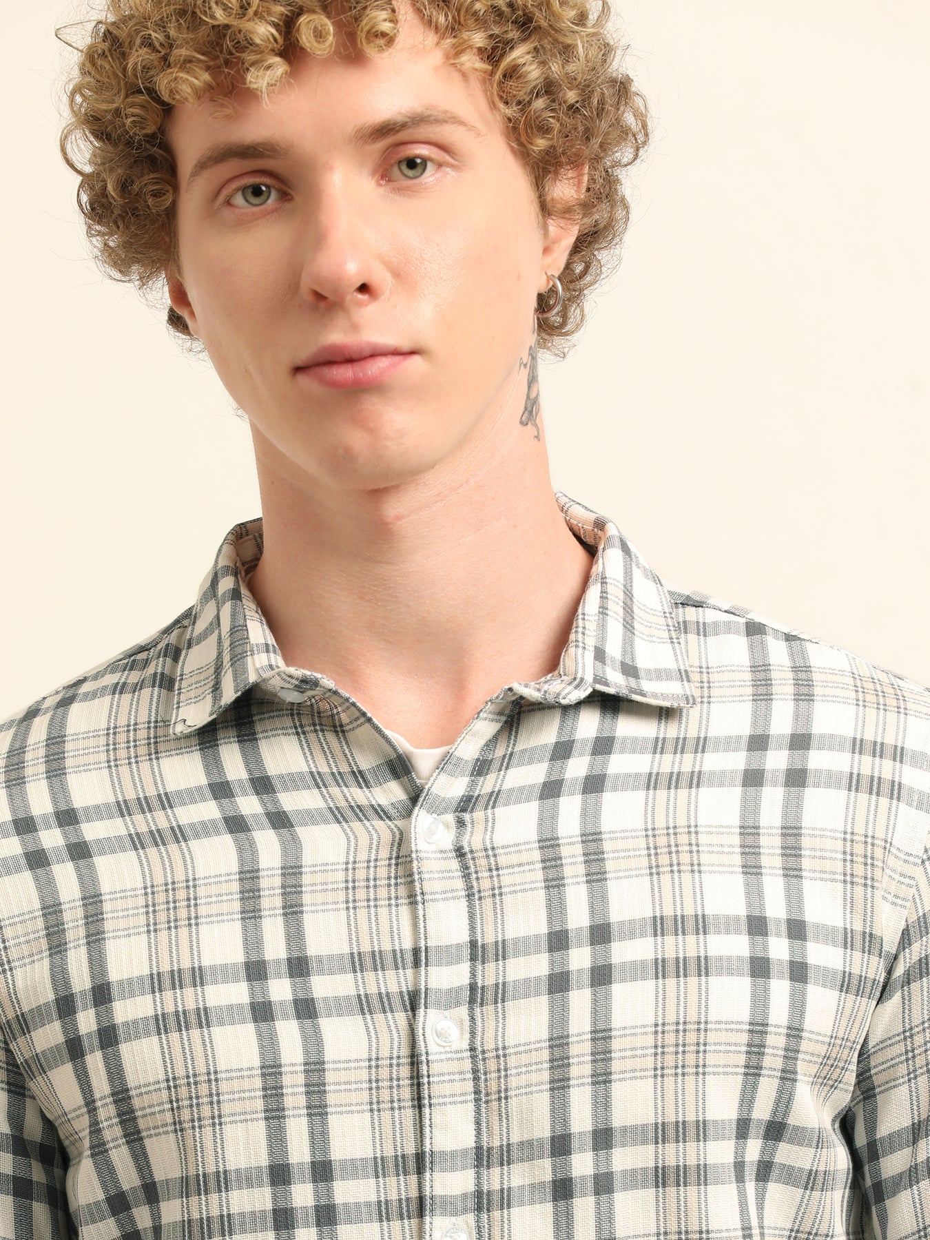 Stay effortlessly stylish with this grey and white check shirt from BUSHIRT. for men — a wardrobe staple designed for comfort and versatility. Crafted from 100% soft cotton, it offers a breathable and lightweight feel perfect for everyday wear. The subtle plaid pattern adds a refined, modern edge that transitions seamlessly from work to weekend outings.