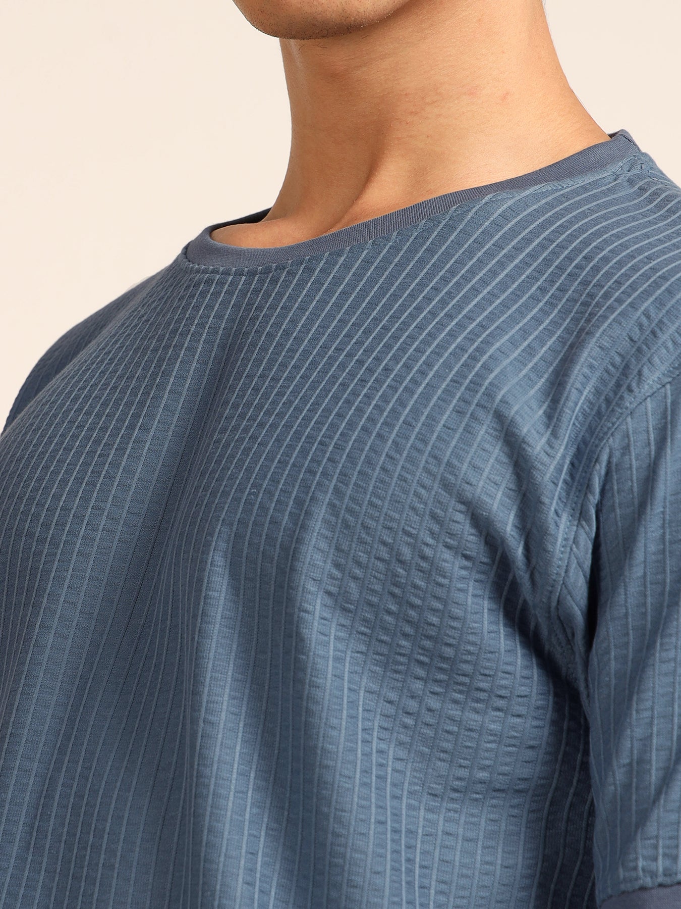 Made from a soft and breathable cotton blend, this tee features a subtle vertical textured pattern that gives it a premium look while remaining minimal and easy to pair with any outfit.