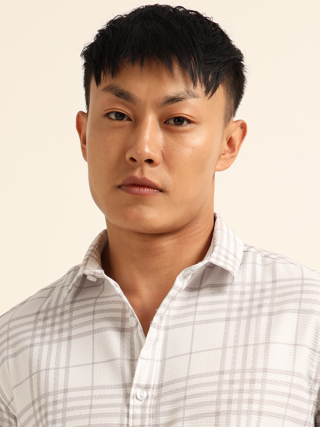 Add a refined touch to your everyday look with this grey check shirt from BUSHIRT. Crafted from high-quality cotton, it offers unbeatable comfort, breathability, and a soft texture. The subtle plaid pattern adds a clean, modern aesthetic that transitions easily from casual to semi-formal occasions.