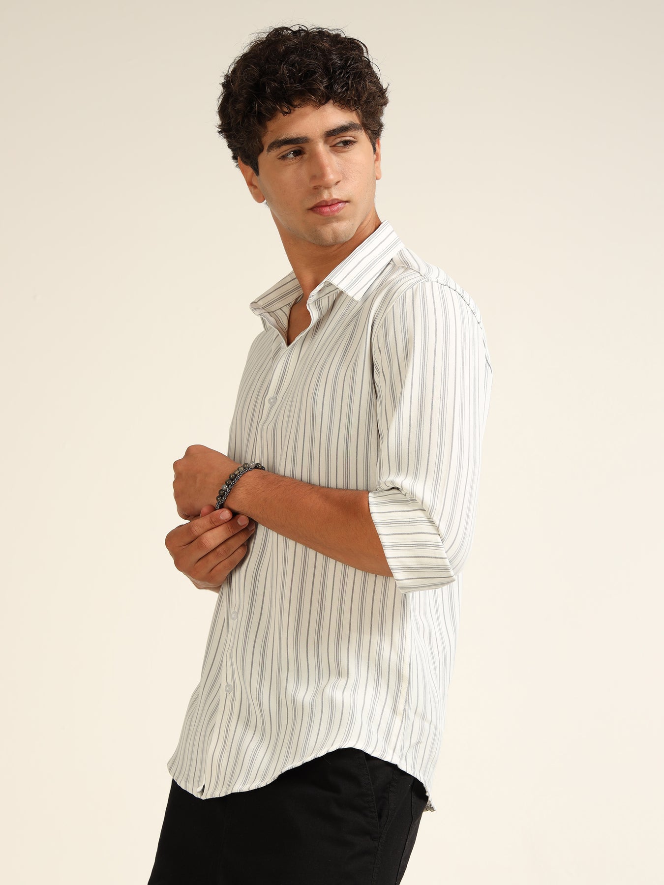 Add effortless charm to your wardrobe with the Bushirt White & Grey Vertical Striped Shirt — the perfect balance of comfort and sophistication. Designed for the modern man, this shirt features a clean white base accented with subtle Grey stripes, making it ideal for both casual and semi-formal occasions.