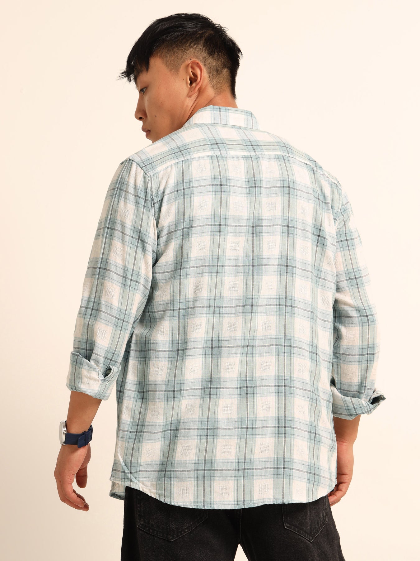 The unique rust-orange and grey check pattern gives it a fresh, modern appeal, while the button-down design and roll-up sleeves make it perfect for both smart and relaxed looks. Pair it with jeans or chinos for a weekend outing, or layer it over a tee for a casual streetwear vibe.