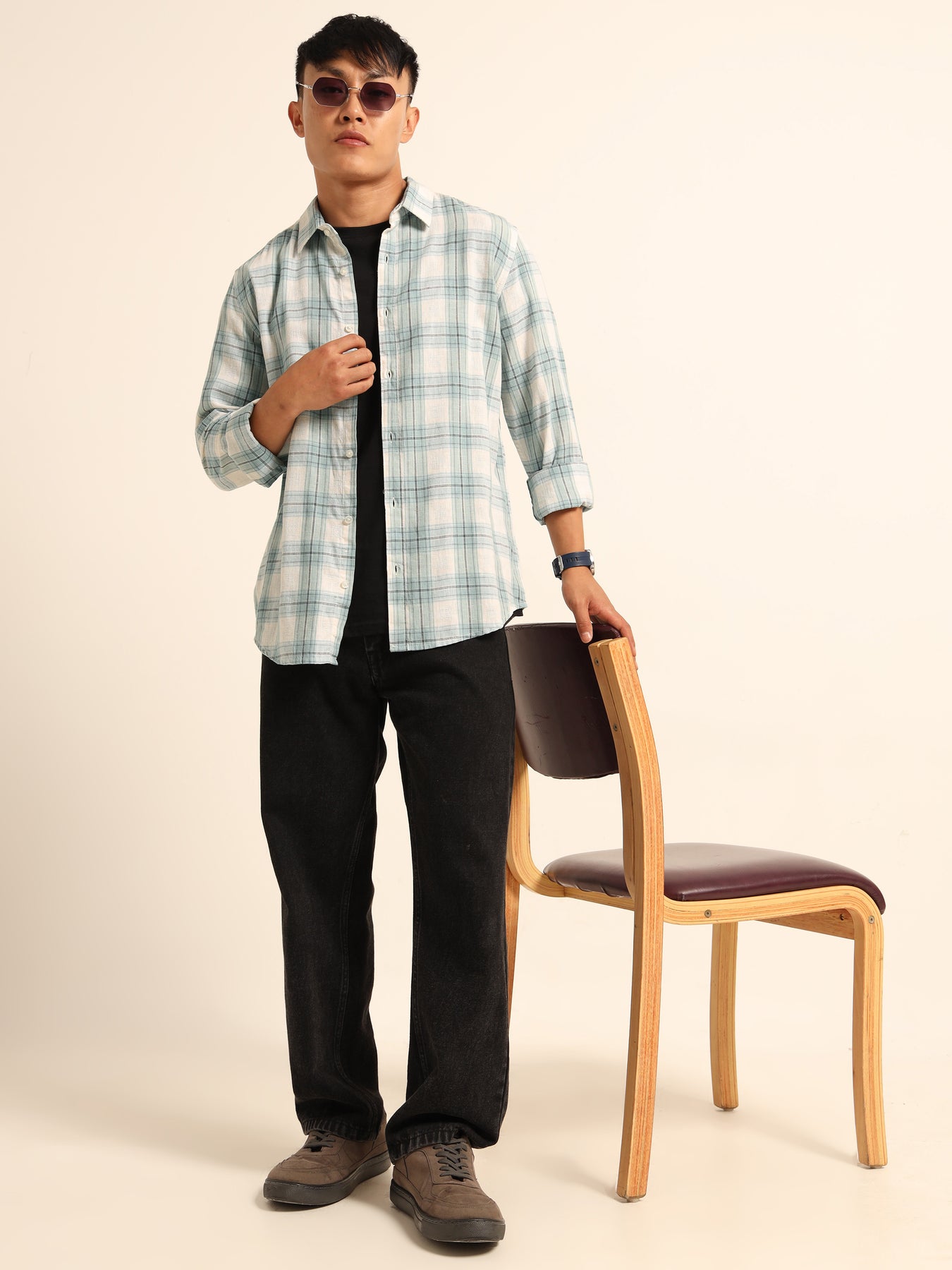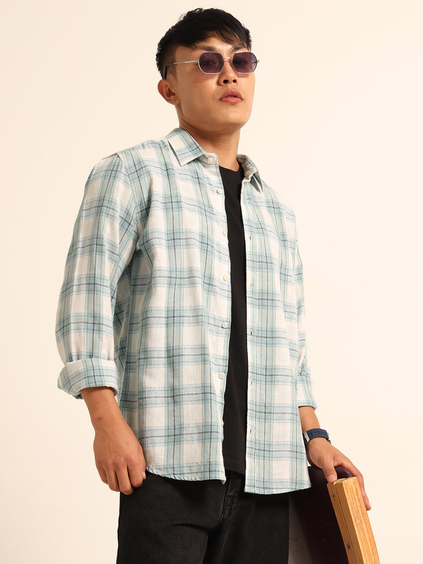 Light Blue Regular Fit Check Shirt