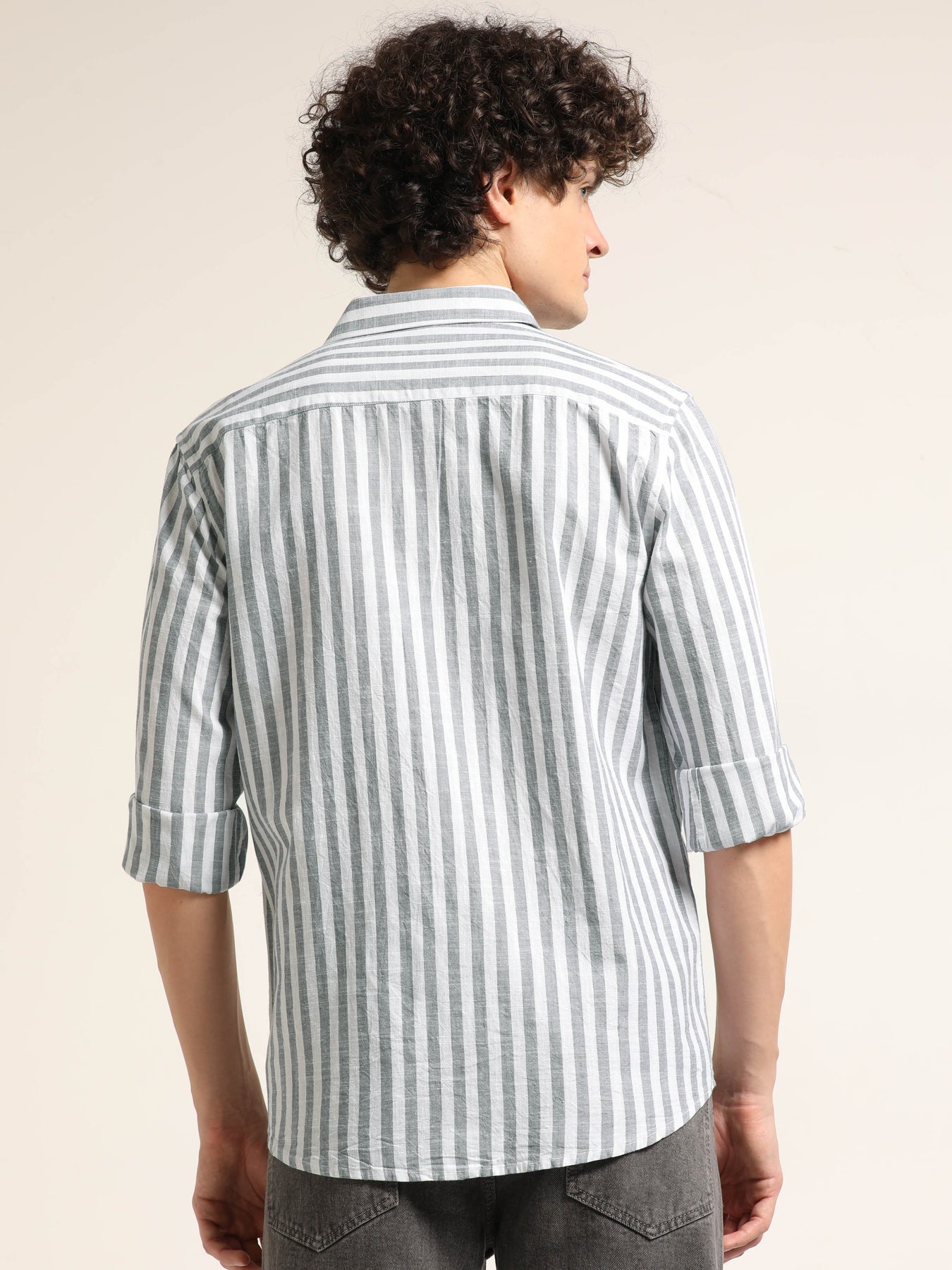 Light Grey Regular Fit Striped Shirt Stripes Shirt Bushirt