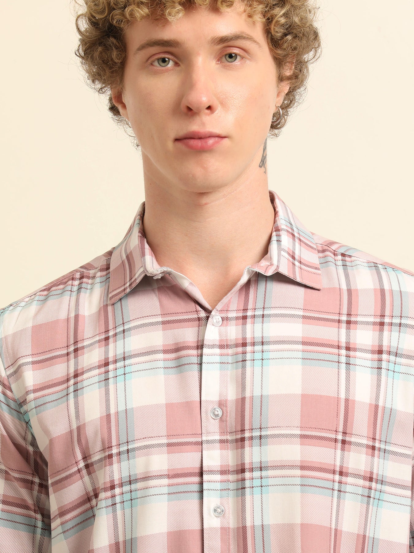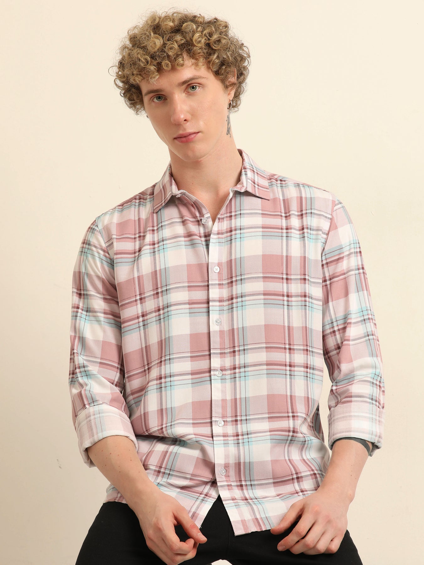 Pastel Pink Regular Fit Check Shirt Checks Shirt Bushirt