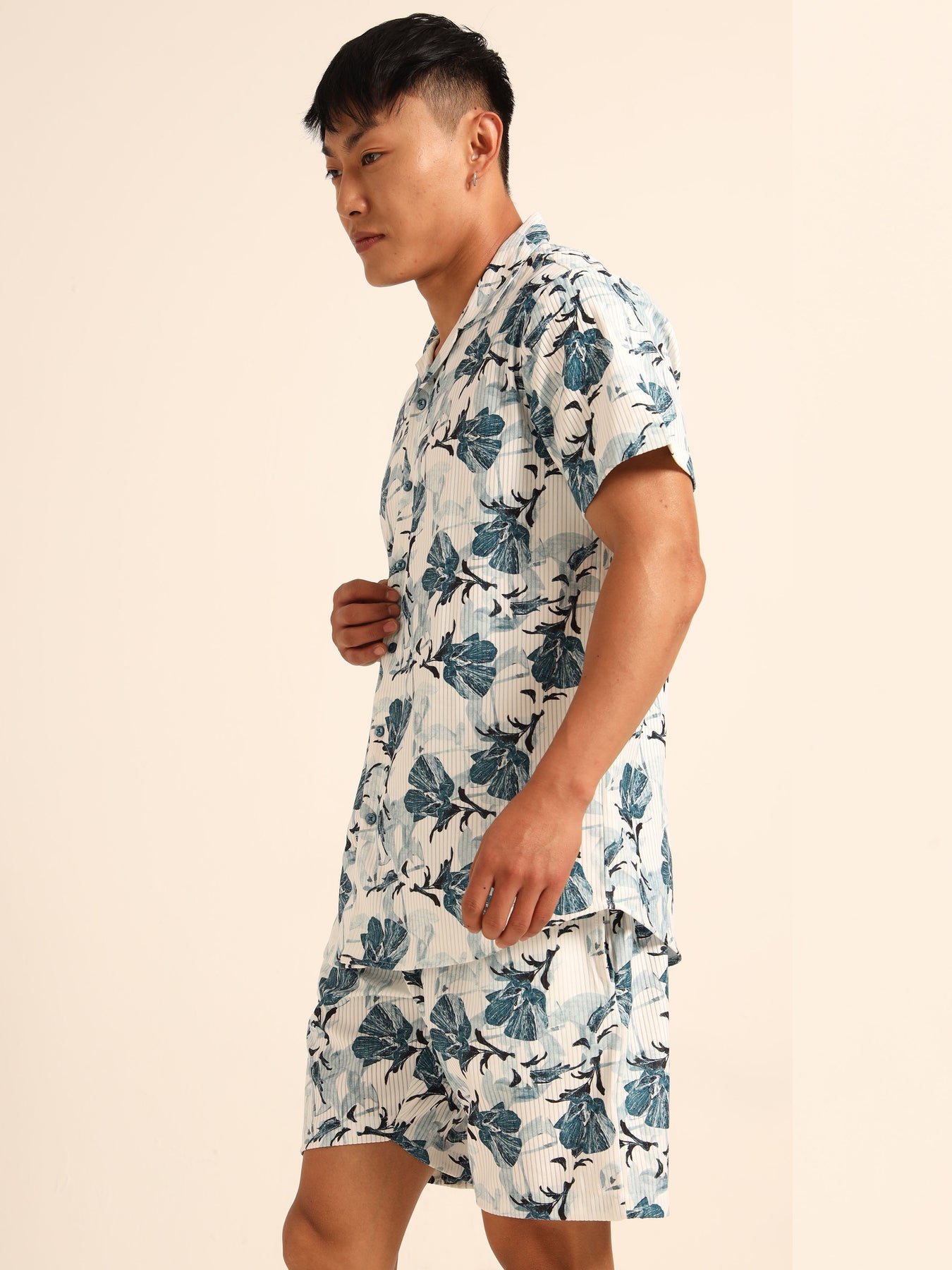 Add a cool, refreshing touch to your summer wardrobe with this Men’s White & Teal Floral Co-Ord Set.